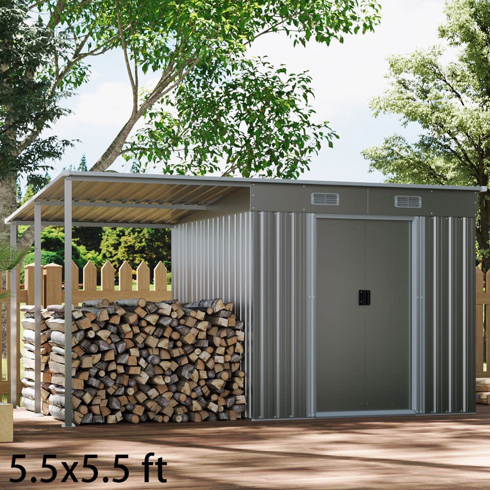 5.5×3.5 ft/ 5.5×5.5 ft/ 5.5×7.5 ft/ 5.5×9 ft Metal Pent Roof Outdoor Storage Shed with Lean-to